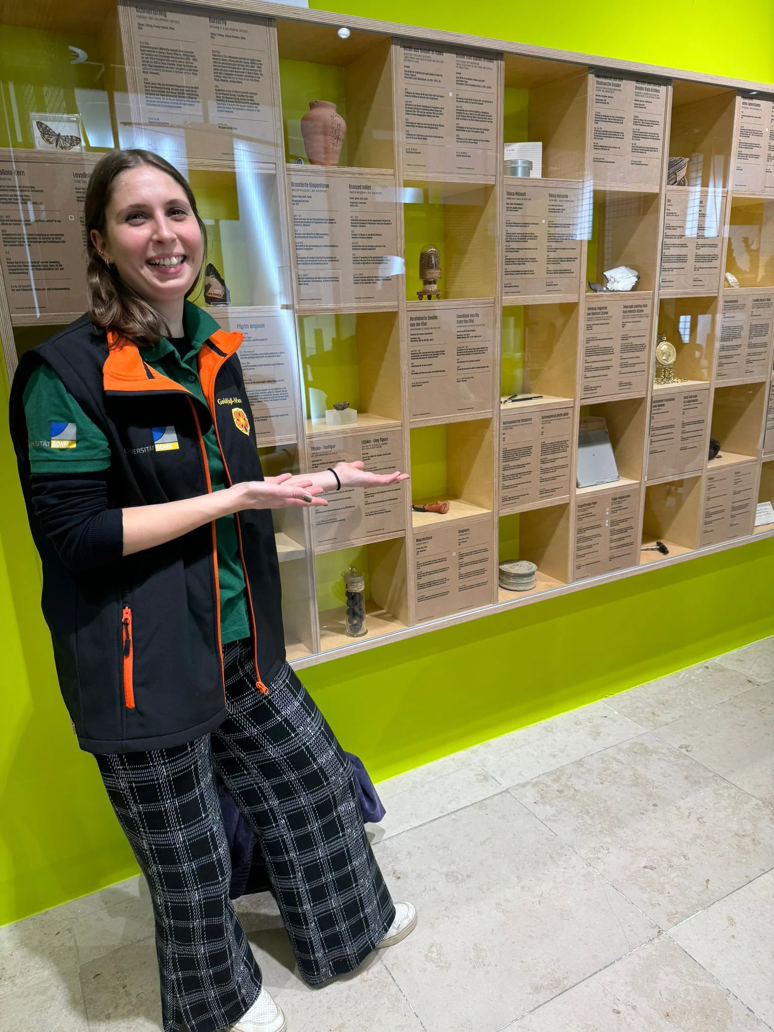 Unsere Doktorandin Teresa Franke beschäftigt sich wissenschaftlich u. a. mit Seelilien aus dem Rheinischen Schiefergebirge und freut sich deshalb besonders, dass die Goldfuß-Seelilie ausgestellt wird.