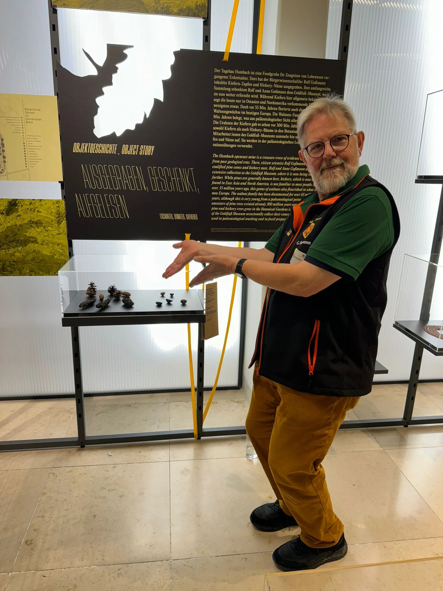 Unser Sammlungsverwalter, Dr. Georg Heumann, ist selber Paläobotaniker: bei Führungen erklärt er gerne, was es mit den Früchten auf sich hat.